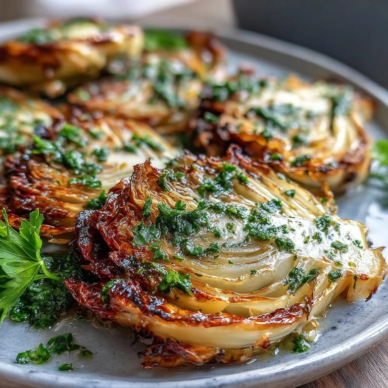 Save I sliced into a whole cabbage one rainy Tuesday, expecting nothing more than a simple side dish, and ended up with something that looked more like a proper steak than anything I'd ever pulled from the produce drawer. The way those thick rounds held together, edges turning golden and crisp in the oven, completely changed how I thought about vegetables taking center stage. A friend had mentioned roasting cabbage this way after a dinner party, and I figured it was worth a try when I had an extra head sitting in the fridge. The smell that filled the kitchen, sweet and caramelized, made me wonder why I'd been shredding cabbage into slaws for so long. When I drizzled that first batch with a fiery green chimichurri, I knew I'd stumbled onto something that could easily become a weeknight regular.
