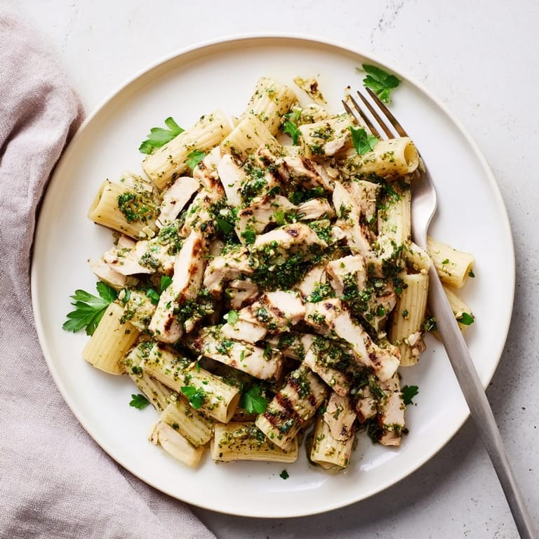 Save The first time I made chimichurri, my entire tiny apartment smelled like an herb garden in full bloom. I had just discovered this magical Argentinian sauce and was putting it on everything, even scrambled eggs. One particularly inspired evening, I realized that bright, garlicky, herby goodness might just be the answer to my pasta boredom. The combination of smoky grilled chicken, al dente noodles, and that vibrant green sauce has since become my go to when I need something that feels special but comes together quickly.