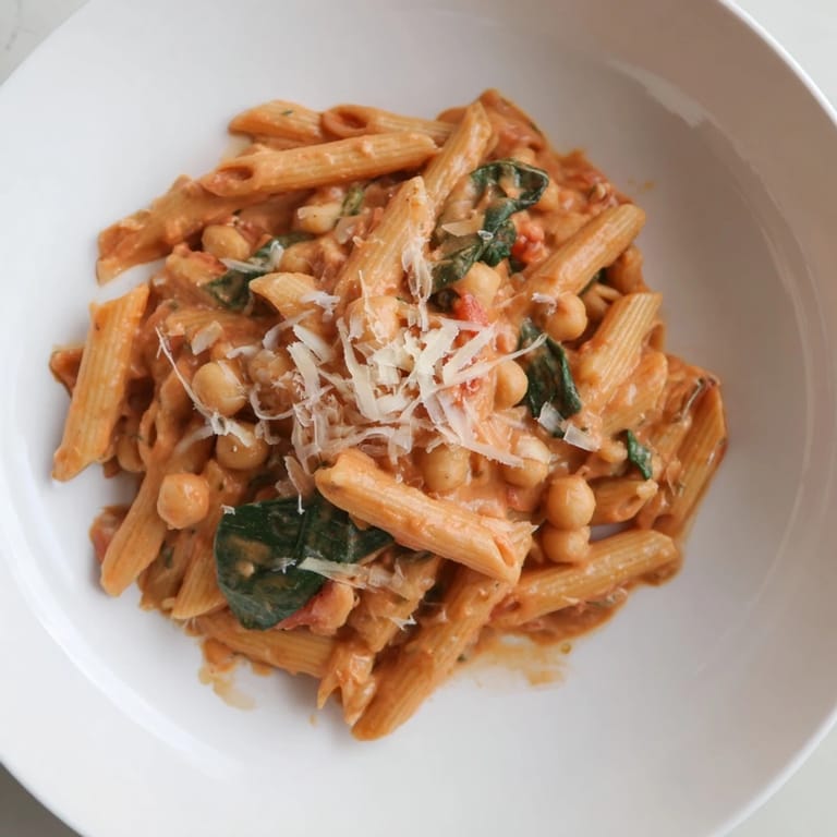 Save My neighbor Sofia knocked on my door one Thursday evening holding a container of this pasta, still warm from her stove. She'd made too much, she said, but I think she just wanted to share something that felt like home to her. The creamy sauce clung to every ridge of the penne, and the chickpeas had this tenderness I hadn't expected. I stood in my doorway eating it with a fork she'd tucked inside, and by the time I finished, I'd already texted her for the recipe.