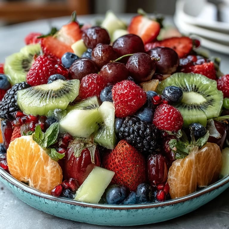 Don't think about this like a regular fruit salad where things can jumble together. Think about it like painting—you want warm colors (oranges, reds, yellows) intermingling with cool colors (blues, greens, purples from the edible flowers) so your eye keeps moving around the table. The berries are your darkest tones and they anchor everything, while the pale cantaloupe and light grapes feel like breathing room. I learned this the hard way at my first attempt when I accidentally clustered all the red fruits together and it looked more like a traffic light than a celebration.