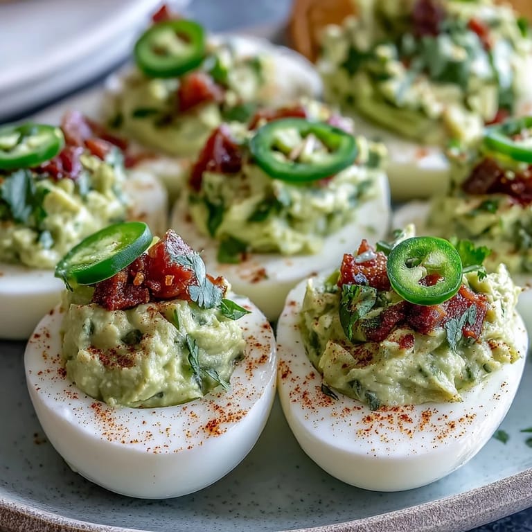 Save One evening, these deviled eggs turned ordinary movie night into a campy feast for my friends, who kept insisting that &next time, bring double.& There was a moment where the chatter quieted, everyone savoring the tang of lime and silky avocado, and I realized these little snacks had become the evening's highlight. Food so simple somehow created an atmosphere that felt celebratory, even without a special occasion. Sometimes, all you need is a tray of these eggs and good company. That memory lingers whenever I whip up a batch, reminding me how food shapes connection.