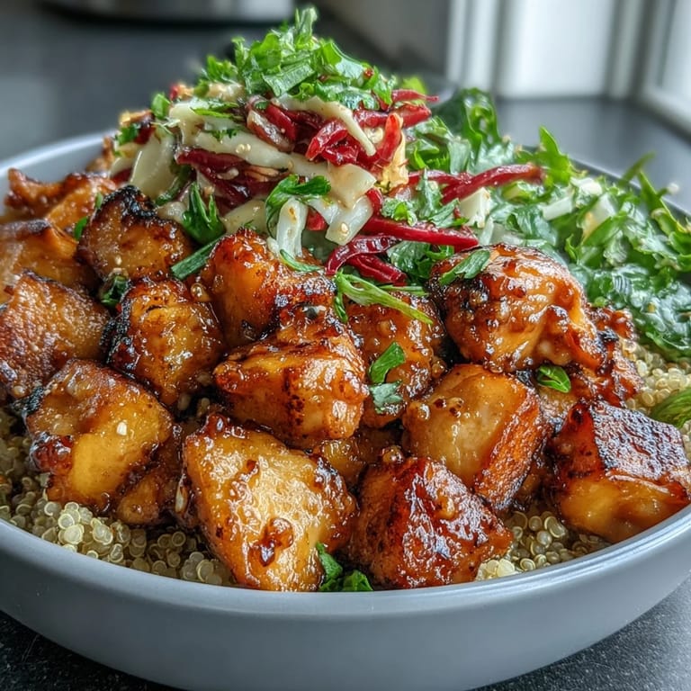 Save I stumbled onto this bowl concept on a Tuesday afternoon when my fridge felt simultaneously full and empty—you know that feeling. There were beautiful sweet potatoes getting soft, half a head of red cabbage I'd forgotten about, and chicken that needed rescuing. Rather than defaulting to my usual routine, I started layering things and drizzling hot honey over it all, and suddenly every element made sense together. The bowl became my answer to those days when you want something that feels both nourishing and exciting, without spending your entire evening in the kitchen.