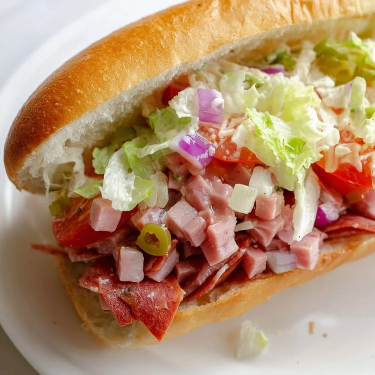Save My neighbor Tony slid a paper-wrapped sandwich across the picnic table one humid July afternoon, saying only, Try this. Inside was a chopped mess of meat, cheese, and vegetables that looked like it had been through a food processor, but one bite and I understood why he grinned so wide. The textures hit all at once: crisp lettuce, snappy pepperoni, creamy provolone, all bound together with tangy dressing that soaked into every toasted crevice. I asked for the blueprint right there, and he laughed, saying it was just everything good about an Italian deli, chopped up so you get it all in one bite.