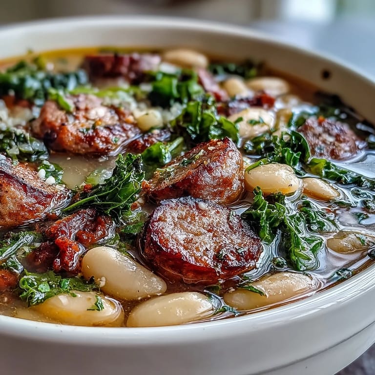 Save On a brisk October evening, the kind that beckons for something hearty and comforting, I stumbled upon this Italian white bean soup recipe while hunting through my grandmother's recipe box. The simplicity of the ingredients belied the complex flavors that would later fill my kitchen with aromas of sautéed sausage and roasted garlic. I remember standing over the pot, watching the kale wilt into the broth, breathing in that fragrant steam and thinking this soup might become a regular visitor to my table. It did, and with good reason.