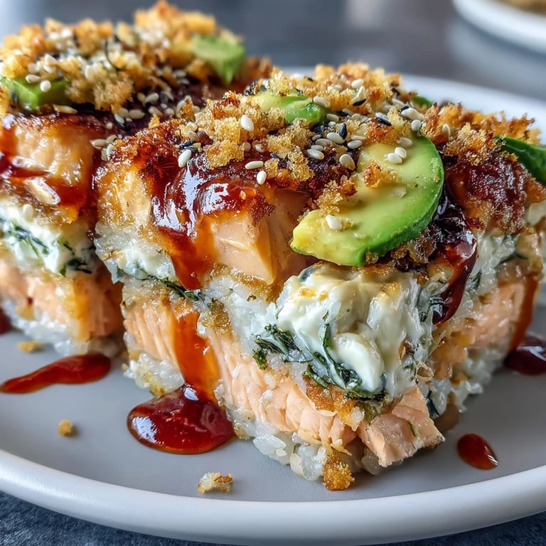 This warm, baked version transforms traditional sushi into a shareable casserole. The rice absorbs the salmon flavors while baking, creating a cohesive dish that's easier to prepare and serve than individual rolls.