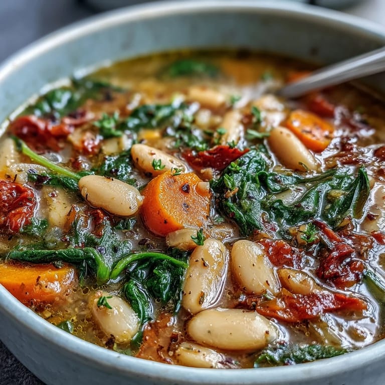 Save The aroma of gently simmering beans and vegetables fills my kitchen whenever I make this Tuscan White Bean and Spinach Soup. I never expected slow cooker meals to carry so much depth, but the way the herbs meld with the broth creates a comforting scene that's uniquely summery. One afternoon, the sunlight streamed in as I chopped carrots and celery, and the scent of garlic made the whole space feel homey. It's the kind of dish that invites you to slow down, savor each step, and embrace a little Italian-inspired simplicity. Sometimes I stir the pot just to revel in the swirl of spinach going from crisp to tender in minutes.