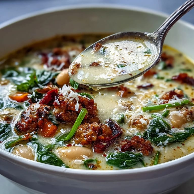 Save I discovered this Tuscan white bean soup on a rainy October evening when I needed something warm but only had odds and ends in the pantry. The way the cream melted into the broth while the kitchen windows steamed up made me forget about the weather outside completely. My husband walked in as the garlic was hitting the pot and immediately abandoned his plans for takeout. The sausage adds such a beautiful depth that transforms simple ingredients into something that feels almost decadent.